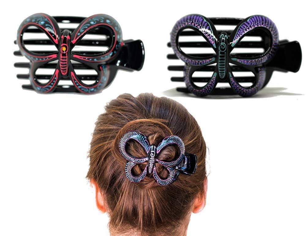 Amazon Com Butterfly Barrettes Hand Painted Bun Cover Clips 2 Pcs Of A Uniquely Hair Bun Holder Hand Painted Handmade Products